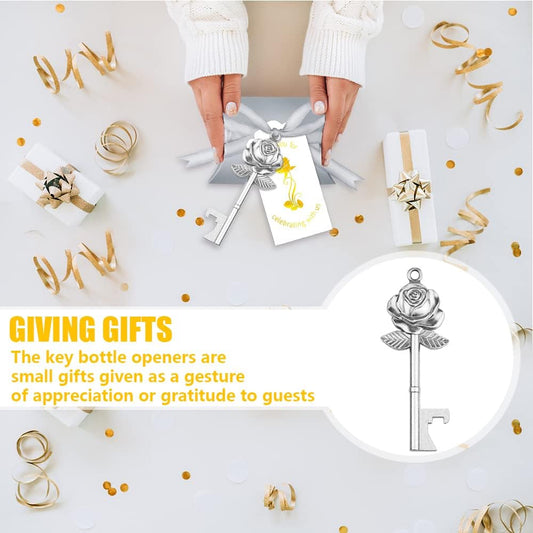 50 Set Rose Key Bottle Openers with Candy Box in Antique Vintage Style Thank You Tags and Ribbons as a Gift Souvenir for Guests at Wedding Party Supplies (Silvery)